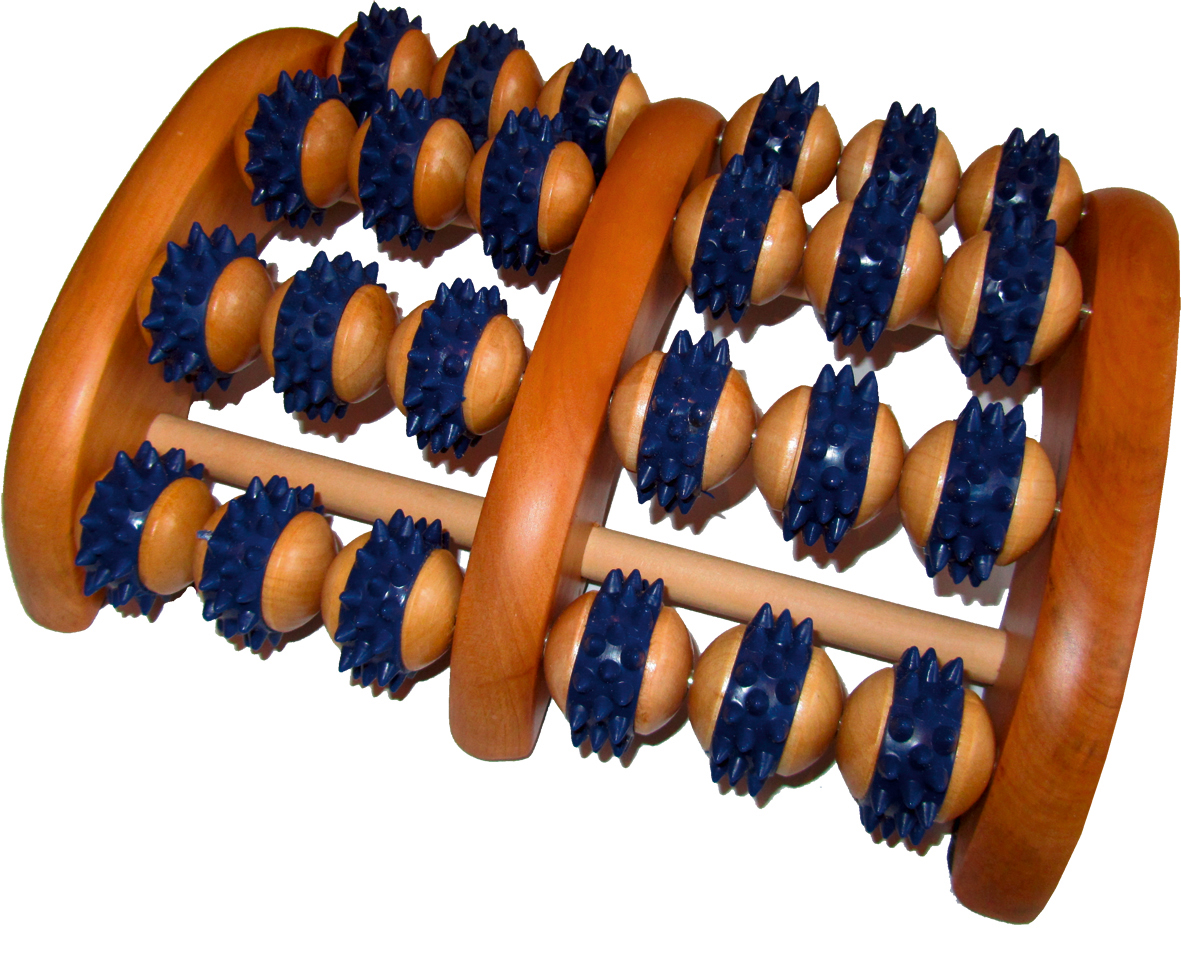Fußmassageroller HOLZ für beide Füße mit beidseits 4 Achsen und Noppenrollen