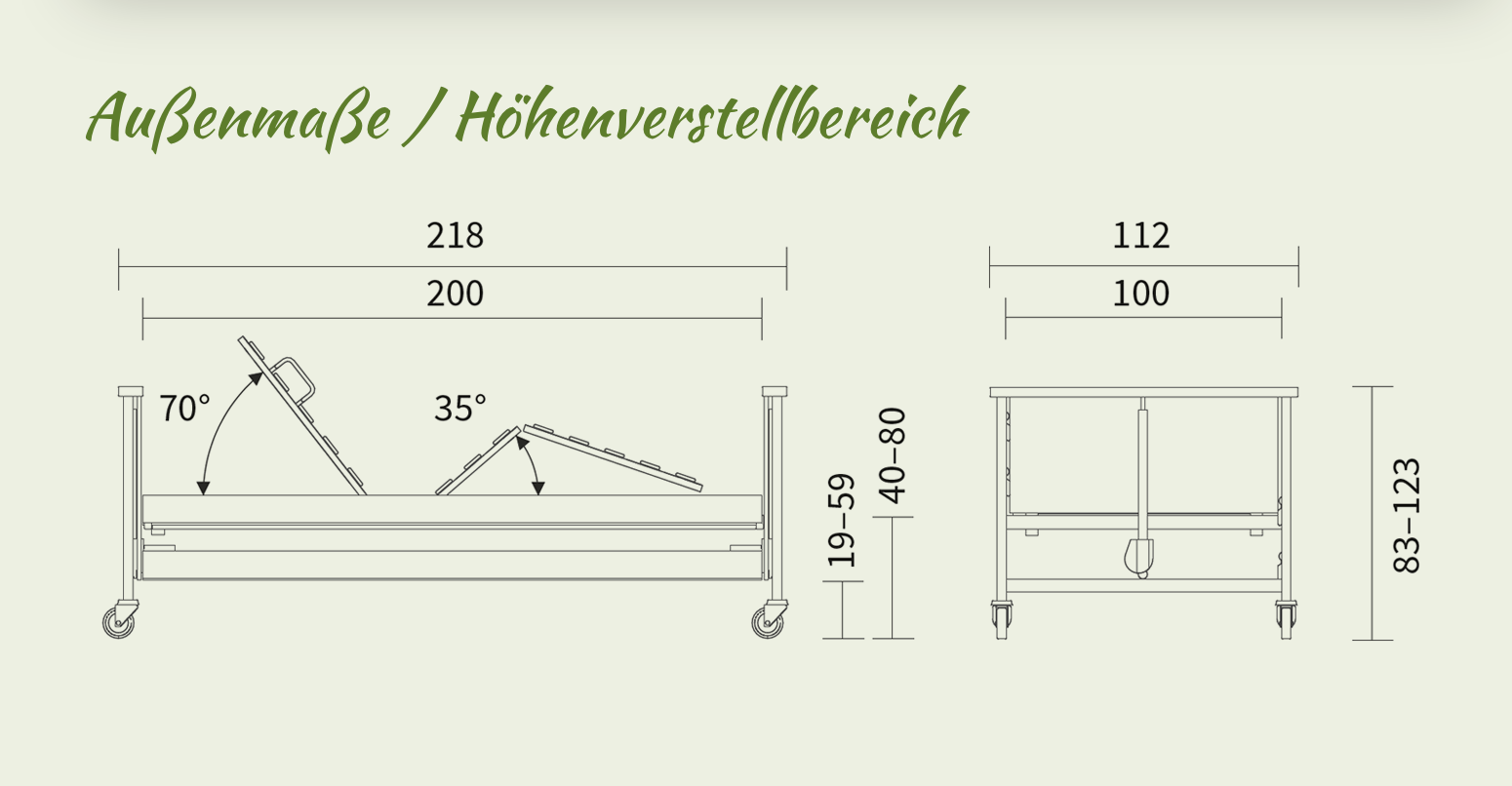Pflegebett mit Holzfederleisten und hohem Komfort in 100 cm Liegeflächenbreite für die häusliche Krankenpflege mit kabelgebundenem Handschalter