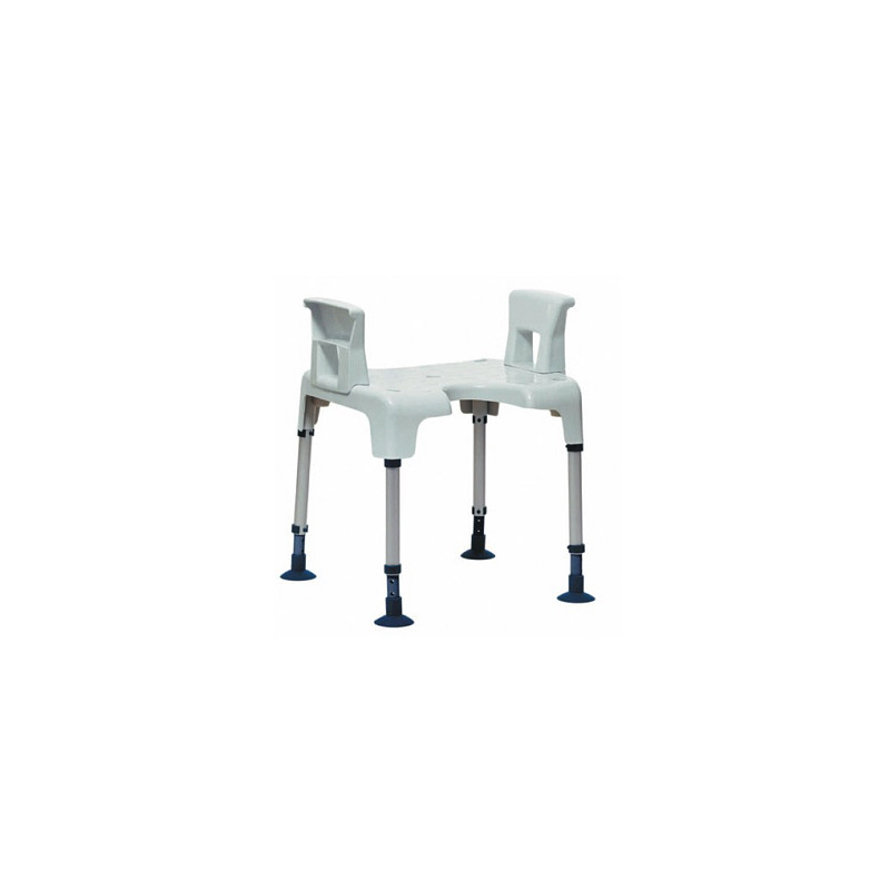 Dieser Duschhocker Pico besitzt zum besseren Hinsetzen und Aufstehen seitliche Armlehnen. Der Pico ist ein sicherer Begleiter bei der täglichen Körperpflege. Seine kompakten Außenmaße im Vergleich zu seinen großen Innenmaßen machen ihn auch für kleine Badezimmer und Duschen interessant. Ein großer integrierter Hygieneausschnitt, wahlweise im vorderen oder hinteren Bereich, erleichtert die Intimpflege. Der Duschhocker Pico hat eine strukturierte, glatte Oberfläche und ist somit leicht zu reinigen. Er lässt sich werkzeuglos montieren und verfügt über höhenverstellbare Standbeine mit großen Gummifüßen für einen sicheren Stand auch auf glatten Böden. Die hohe Belastbarkeit von 160kg macht ihn auch für schwere und große Nutzer sowie adipöse Patienten interessant.