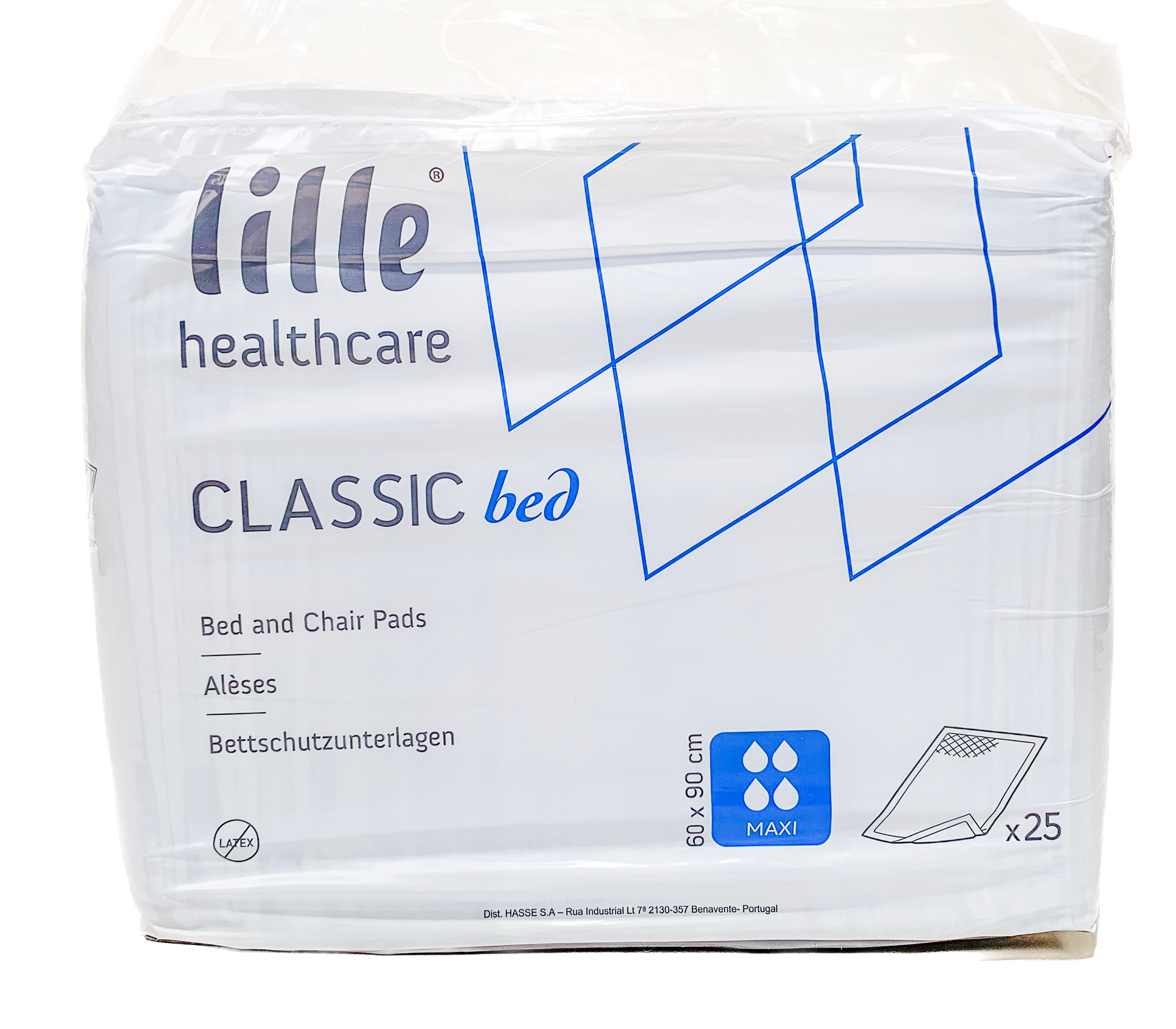Die Bettschutzeinlagen Lille CLASSIC bed sind eine absorbierende Einwegunterlage. Mit ihrer Verwendung können Matratzen und Sessel wirksam geschützt werden können. Die Bettunterlagen CLASSIC bed können zusätzlich zu den am Körper getragenen Produkten verwendet werden. Sie bestehen aus Zellstoff-Flocken und haben auf der Rückseite eine blaue Polyethylen-Folie für zusätzlichen Schutz vor Nässe. Die Oberfläche der Bettunterlagen ist mit diamantförmigen Linien versehen, um eine optimale Saugleistung und Flüssigkeitsverteilung über das gesamte Produkt zu erzielen.