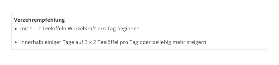 mit 1 – 2 Teelöffeln WurzelKraft pro Tag beginnen