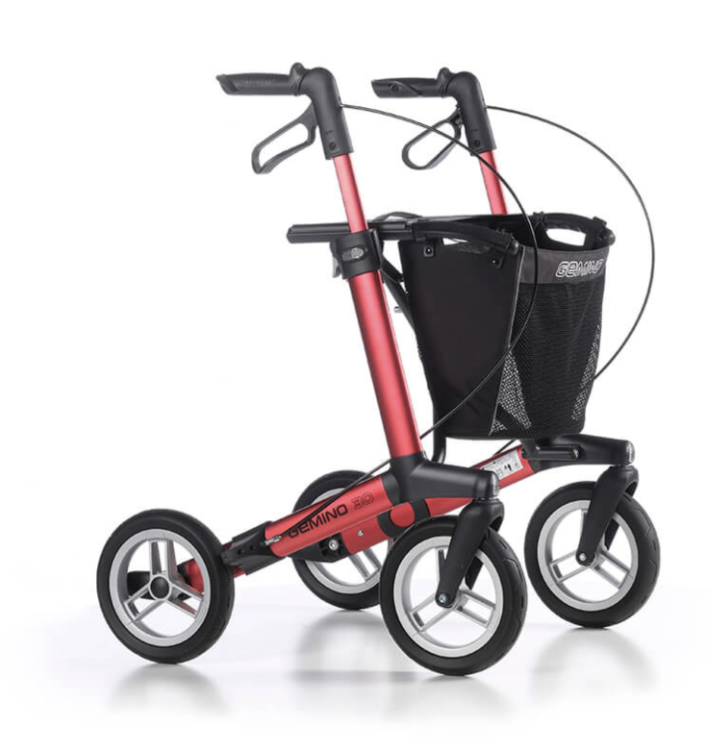 Leichtgewicht-Rollator mit Softbereifung Gemino30 Comfort in 2 Größen - große, softe Räder und Tasche Farbe: Scarletrot
