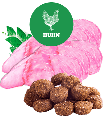 - Frisches Hühnerfleisch (40%), getrocknetes Hühner- & Putenfleisch (26%), Amarant (21%), Erbsenmehl, Apfel, Hühner- & Putenfett (3%), Chiasamen, Mineralstoffe, Leinsamen, Hühner- & Putenleber (1%), Karotten, Zucchini, Bockshornklee, Löwenzahn, Flohsamen, Spinat, Rosmarin (0,1%)