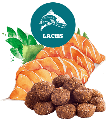 - Frischer Lachs (41%), getrockneter Fisch (25%), Amarant (23%), Erbsenmehl, Apfel, Lachsöl (4%), Chiasamen, Mineralstoffe, Leinsamen, Karotten, Zucchini, Bockshornklee, Löwenzahn, Flohsamen, Spinat, Rosmarin (0,1%)