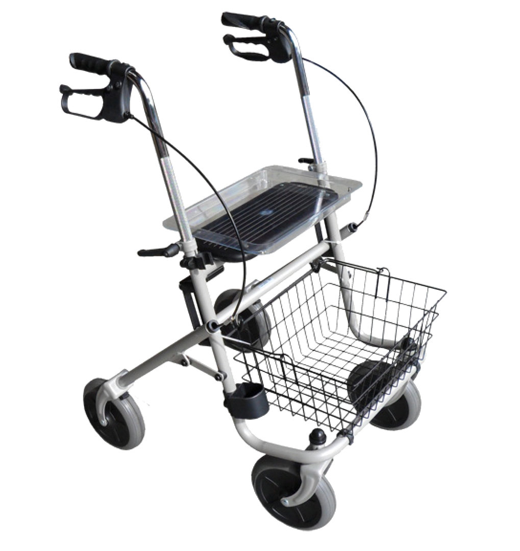 Standard Rollator, klappbar mit pannensicherer PU-Bereifung, Korb und Tablett, Stockhalter