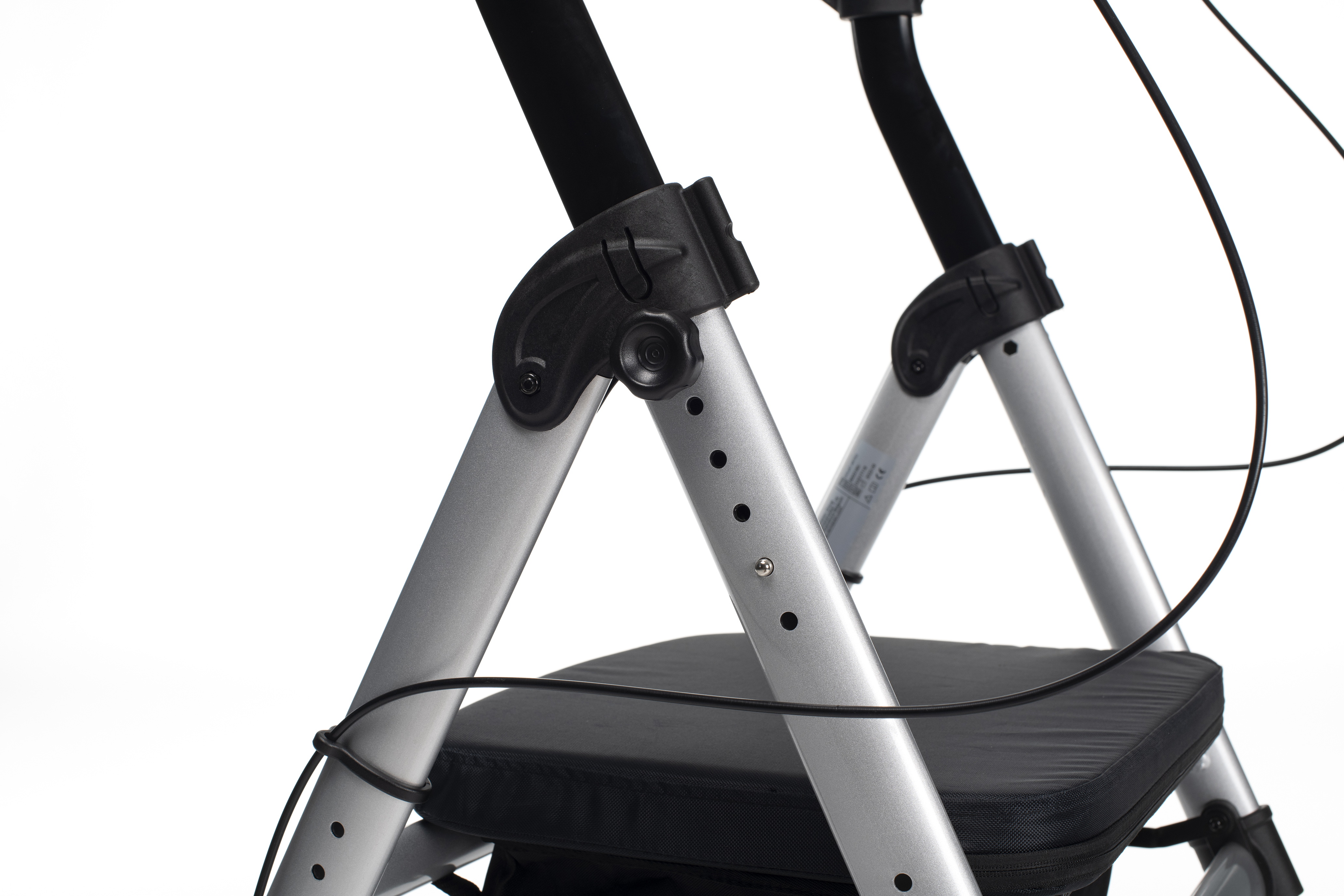 Der Goliat Artro Rollator hat ein modernes und robustes Design mit höhenverstellbaren Unterarmstützen, um Hände und Handgelenke beim aufrechten Stehen zu entlasten. Die Unterarmstützen sorgen beim Gehen und Stehen für eine aufrechte, entlastende Position und die Verbesserung der Körperhaltung. Mit einem maximalen Benutzergewicht von 200 kg und einem breiteren Rahmen ist dieser Schwerlast - Rollator eine ausgezeichnete Wahl für Benutzer, die zusätzliche Stabilität und Robustheit bei der Fortbewegung benötigen. Die Gehhilfe wurde so konzipiert, dass sie sowohl im Innenbereich als auch im Außenbereich verwendet werden kann. Die weichen, pannensicheren Reifen erlauben eine komfortable Benutzung auf nahezu jedem Untergrund. Neben dem Gehstützenhalter hat der Goliat einen höhenverstellbaren, breiten, gepolsterte Sitz und einen gepolsterten Rückenbügel, welcher sich nach Bedarf auch abnehmen lässt. Durch höhenverstellbare Schiebegriffe kann der Rollator auf die Körpergröße des Benutzers angepasst werden und eignet sich für kleine und große Nutzer. Die Vorderräder sind leichtgängig und manövrieren zügig, so erhält der Goliat eine angenehme Wendigkeit. Sichere Pausen ermöglichen zwei feststellbare Bremsen. Persönliche Gegenstände und kleine Einkäufe passen in die geräumige Tasche, welche unter dem Sitz des Rollators befestigt ist. Ein einfaches Faltsystem ermöglicht ein platzsparendes Zusammenfalten der Gehhilfe.